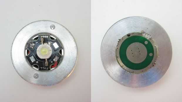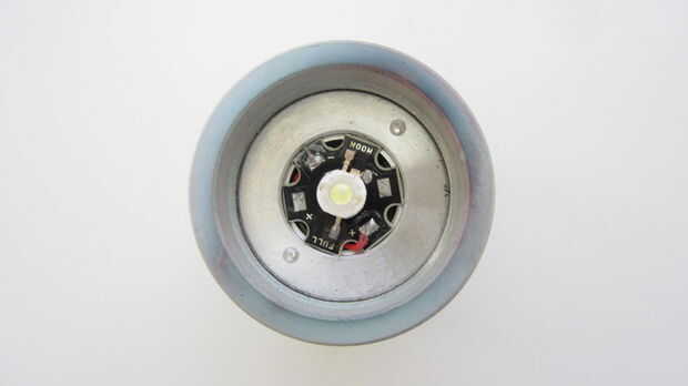 La luz que utilicé fue cosechada de una vieja linterna. Primero quité el reflector de la linterna. Esto expone el conjunto de LED. Entonces destornilla la placa de montaje del LED. Para ello inserta destornilladores pequeños agujeros en ambos lados del LED y gire la placa a la izquierda hasta que salió. Dejé el LED montado en placa de circuito y placa de montaje que fue fijado. Esto hizo más fácil conectar cables de nuevo y montarlo en el interior del maletín.