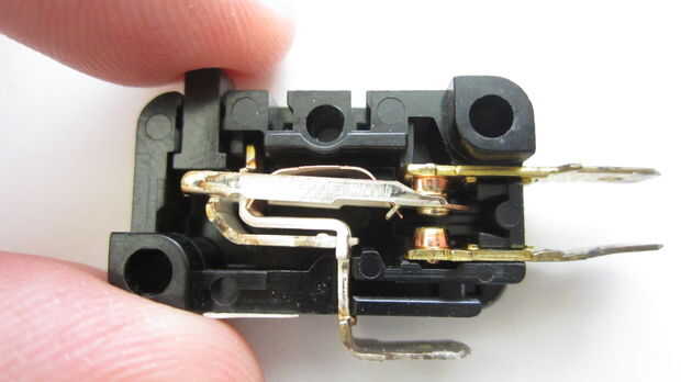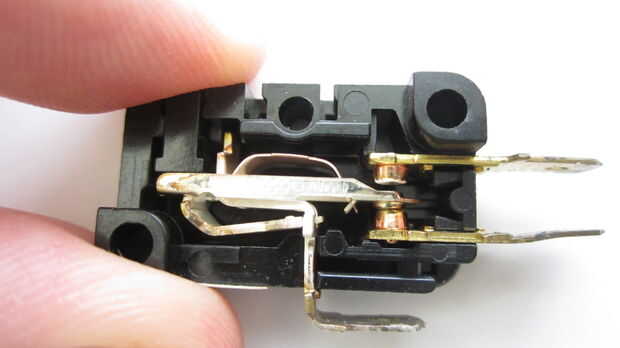 Usted puede comprar normalmente cerrado momentáneo pasó de casi todas las tiendas que venden componentes electrónicos tales como Radio Shack. Estoy utilizando una miniatura complemento interruptor de acción con un brazo de palanca largo. Este interruptor tiene tres terminales. Un borne es normalmente abierto, normalmente está cerrado un terminal y el tercer terminal es la terminal "común" que los otros dos terminales que se conectan a.