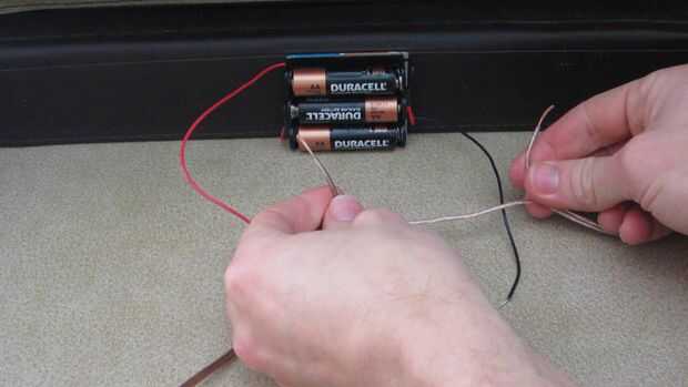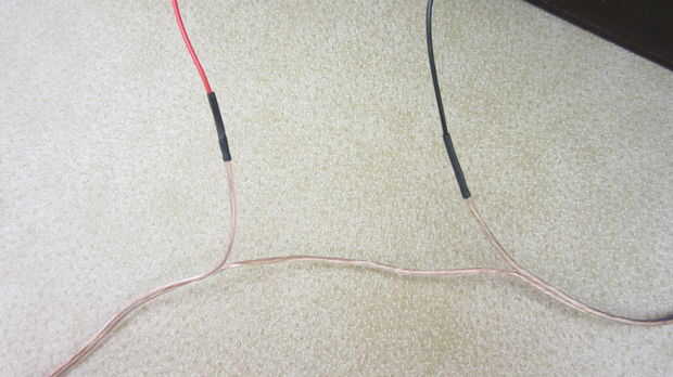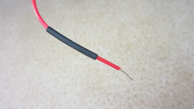 Cortar uno de los cables cerca de su punto medio. Luego separar y pelar los extremos. Conecte uno de los extremos cortados a cada uno de los cables de dos extremos de la batería. Una vez más utilicé tubería encogible para aislar las conexiones.