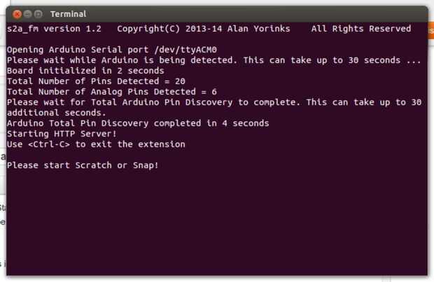 Después de subir Una estándar firmado a Arduino, vaya a la ventana de comandos y CD al directorio s2a_fm-master y tipo: