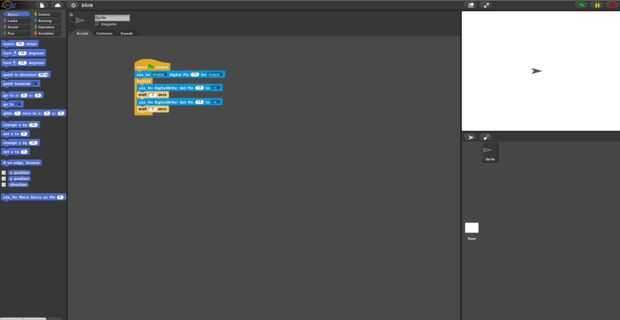 La secuencia de parpadeo debe aparecer en el editor de listo para correr. Haga clic en la bandera verde en la parte superior derecha de la Snap! editor y el cableado LED conectado al pin 13 de Arduino debe comenzar a parpadear.