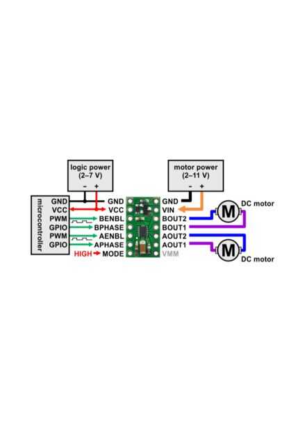 El DRV8835 controla 2 motores. Hay 2 pins de control para cada motor.