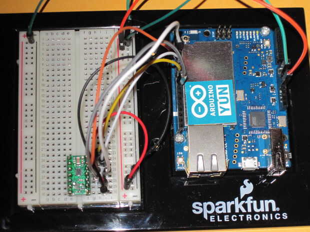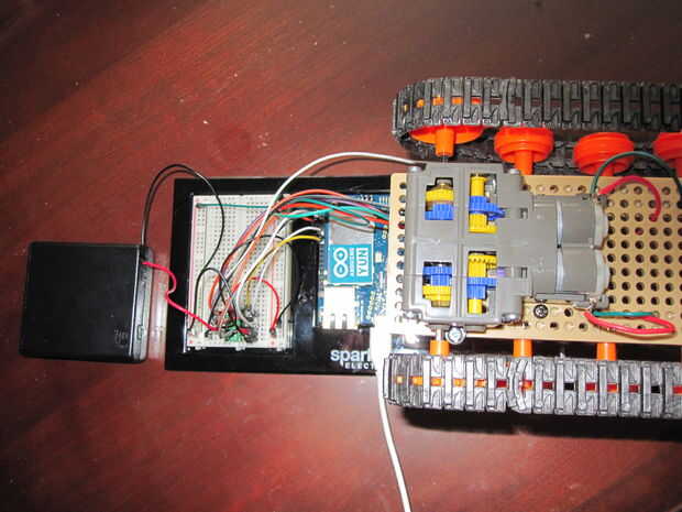 Utilizando el diagrama en la primera pantalla, los pernos del lado izquierdo de la DRV8835 están conectados con el Arduino.