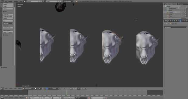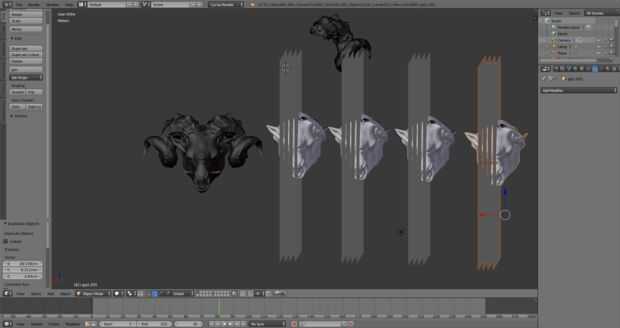 Si tuviera que hacer esta parte otra vez utilizaría tantos sectores como sea posible y como hoja estrecha como sea posible ya que con esas divisiones gruesas como usé la mayoría del detalle se perdió y terminé tener que esculpir manualmente para la mayor parte. Utilizando rebanadas muy delgadas le permitirá estar muy cerca de la forma final con el mínimo esfuerzo. También incluiría los cuernos en la base, la única razón que no lo hice fue porque sabía que trabajaría con esas rebanadas gruesas pero no veo ninguna razón por qué no funciona si las rodajas eran más delgadas.