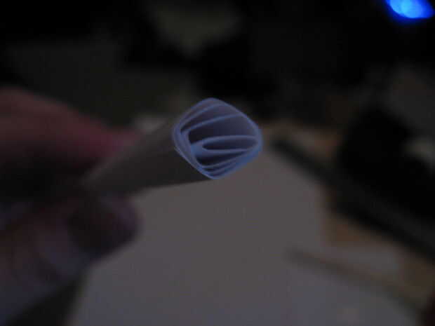 La cinta al final por lo que no desvela y luego apriete las piezas planas para hacer la barra redondeada.