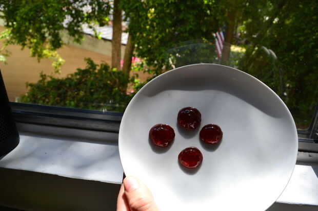 - Apagar el fuego. Trabajando muy rápidamente, agregar el colorante de tu elección y vierta la mezcla en moldes. (Hice diferentes tamaños para ver cual funcionaría mejor). Deje enfriar durante al menos 10 minutos.
