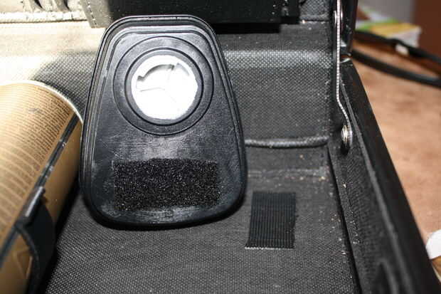 Primero aplique un trozo de velcro (la parte suave) en la parte posterior del filtro de la pila, y un pedazo del gancho del velcro en el interior de la caja donde desea que el filtro para colgar.