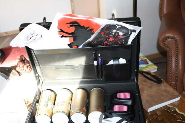 Luego tirar su cuerpo de respirador en la con sus filtros.   Sorteo en tus guantes, bocetos, plantillas, o todo lo que puede. y listo.