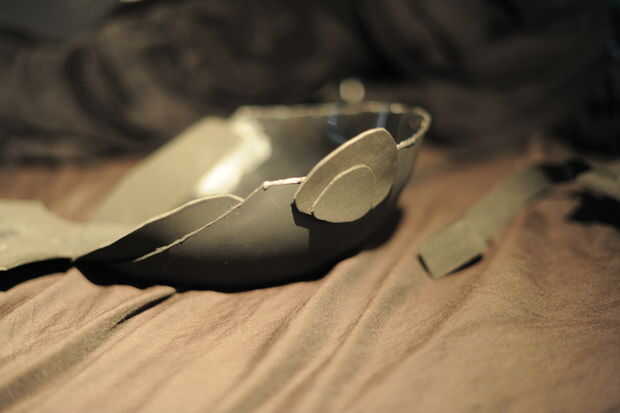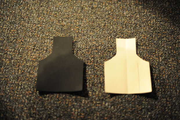 El blindaje también tiene detalles en la parte superior (vértice) que trazó sobre el papel y cortar. Luego cortar las piezas de espuma y pegado el la parte superior delantera de la placa del hombro. También para fijar la placa del hombro he añadido velcro que lo sujeta a la camisa donde se pegan el pecho y laterales abs en.