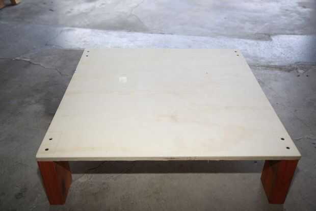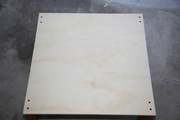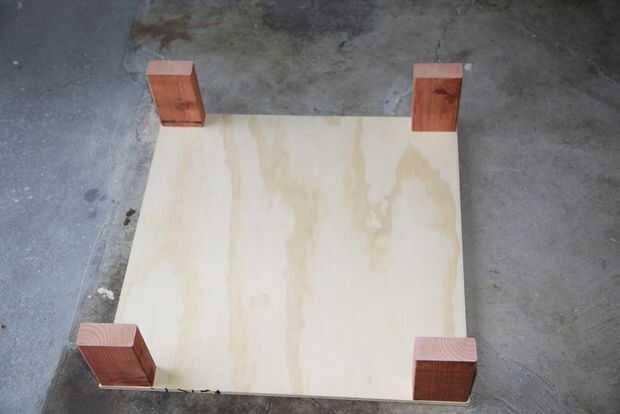 Luego poner los bloques en la plataforma y atorníllelos en el uso de los tornillos de madera, utilizando las líneas de lápiz como guía