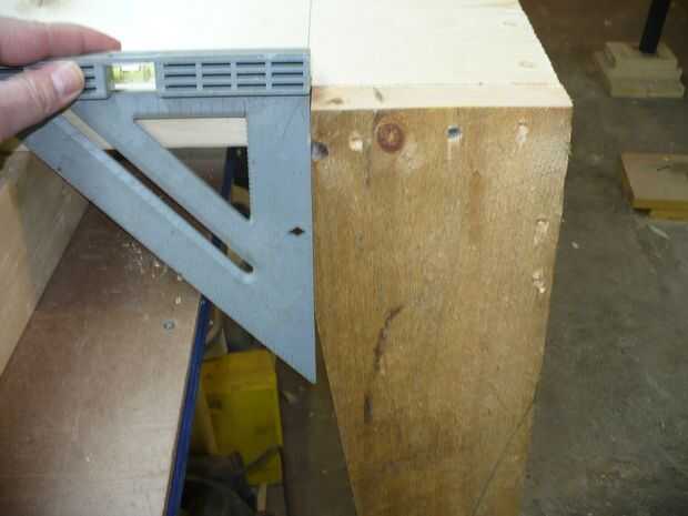 Ahora viene la parte un poco difícil. La adición de las piernas. Mantiene todo en su lugar mientras que enroscar las piernas es un poco un truco. Puede robar algunas de las ideas de las fotos. Asegúrese de que utiliza 3 tornillos en el riel superior y 2 en cada apoyo (por la pierna) y no se olvide el pegamento. La cola es donde la verdadera fuerza.  Pretaladrar los agujeros ayuda a que la colocación de las piernas mucho más fácil.  Suelen poner un tornillo en libremente en la parte central superior de la pierna y luego use una escuadra para verificar que la pierna en ángulo recto a la baranda superior y luego añadir los tornillos restantes. Otra cosa que he notado, una vez que construir uno de estos, usted puede utilizarlo en una plantilla para construir el segundo de ellos.