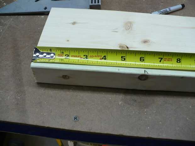 Lo que somos después de forma un ángulo de las patas para splay hacia fuera y hacer más estable el caballete. Así que tenemos que cortar un ángulo de los lados del travesaño superior, pero sólo las primera de 6 pulgadas o menos. Ahora podríamos cortar un ángulo a lo largo de todo el filo de la baranda superior, pero haría cosas sujeción al borde de la baranda superior imposible en el futuro. Así que para los dos primeros métodos sólo vamos a ángulo las 6 pulgadas del riel superior en cada extremo.