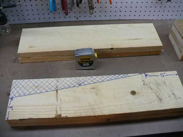 El ahusamiento: disminución gradual de las piernas no es absolutamente necesario. Pero ahorrar peso y añade un cierto aspecto del proyecto. Corte el cono es muy fácil. Primero Mida la longitud de la parte superior no cónica y márquelo. Encontrar el centro de la parte inferior de la pierna y haga una marca. Entonces sólo tiene que conectar las dos marcas con lo que es recto. Y corte a lo largo de la línea. Usted puede hacer esto con una sierra circular, una sierra, una sierra de calar, una sierra de mano, o si usted tiene acceso a una tienda con Sierra de mesa y un ahusamiento de la plantilla, puede utilizar.