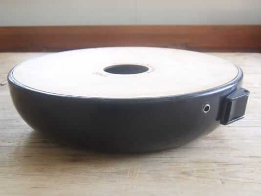 Bien, hace poco recibí mi primer cuenco de fibra de vidrio y hecha la primera fibra de vidrio del tambor, justo la semana pasada. Cuadro 11 muestra el tambor terminado. 11a y 11b muestran el tazón de fuente y la figura 12 muestra el tambor acabado con una toma de Jack que está vinculada a un pickup piezoeléctrico dentro del tambor.
