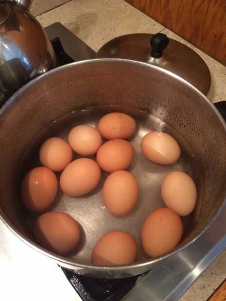 Hervir huevos durante veinte minutos o hasta que estén duros.