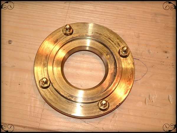 Para la parte delantera encontramos un anillo de latón de una vieja máquina de la panadería y la parte de atrás un cojinete de la máquina vieja. Antes de que este equipo pesado hemos añadido algunos tornillos de bronce para la decoración...