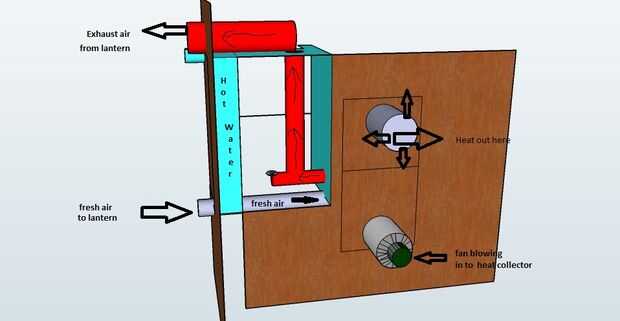 Esta vista muestra lo que verá desde el interior del remolque, el conducto inferior tiene el ventilador de entrada, el conducto superior debe soplar aire caliente en usted.