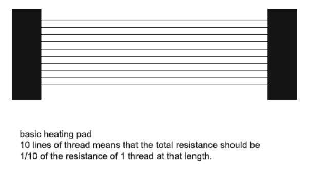 Se puede calcular un ejemplo usando los 5 Ohms y 5 v, que la corriente es de alrededor de 1000 mA (Ley de Ohm) y la energía es de alrededor de 5 vatios (Watt es la unidad de energía). Se trata de un valor de buena calefacción para una almohadilla pequeña. Cuando se aplica menos calor, tarda más en calentarse. ¿Qué pasa si le sucede que tiene una resistencia mayor? Dicen que 100 Ohm. Entonces porque la dependencia de V es cuadrática sólo necesitará aumentar el voltaje a unos 20 V para obtener la misma cantidad de energía generada.