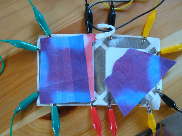 El cambio de color puede ser causado por tocar (si las manos son lo suficientemente calientes). También puede ser causada por la tela con una almohadilla térmica de calefacción. Utilizando así el color cambio tengan la misma función que un LED. Hay diferencias: cambiar por la calefacción puede ser rápida, pero volviendo a la primer color será lento.