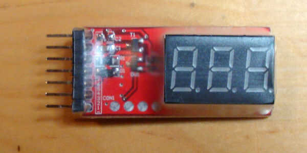 Comprobación puede hacerse con un dispositivo muy simple y barato de dx.com (pueden comprarse en otros lugares también, pero más caro). Conectas el cable del sensor y da los voltajes de las células y la tensión total.
