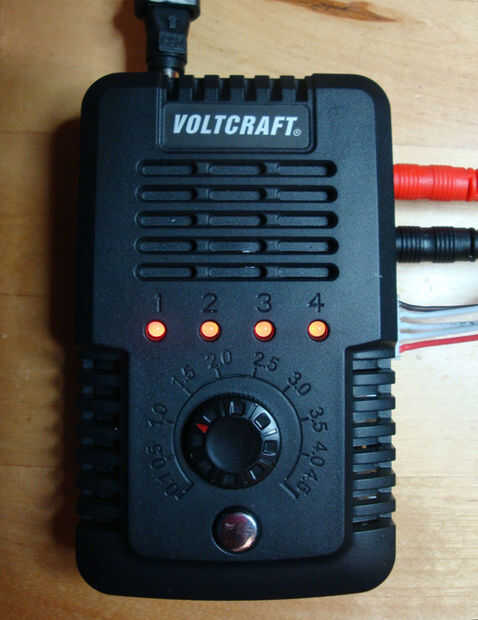 Para hasta cuatro células se puede utilizar el cargador/balanceador simple VOLTCRAFT E4 (20 euros). (Necesita un adaptador).