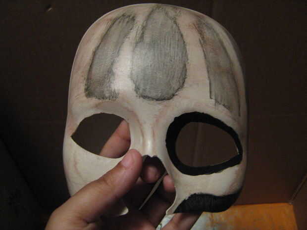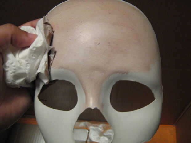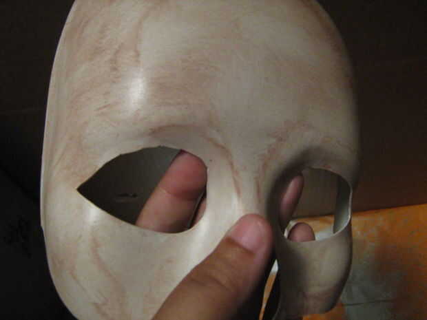 Lo que terminé haciendo fue terminar lo que empecé, luego me fui sobre ella con un ligero velo de brown. Después de eso, usé mi pequeña antorcha de propano con su complemento de pistola de calor y ablandado por la máscara un poco. Utilicé una herramienta metálica pequeña que formó y en las manchas para crear tipo de las colinas y valles. Otra vez, no resultan exactamente cómo había querido a. Pero todavía cabe, así que adelante!