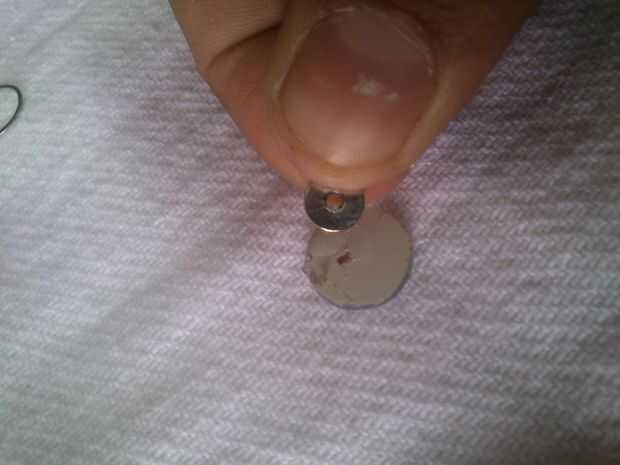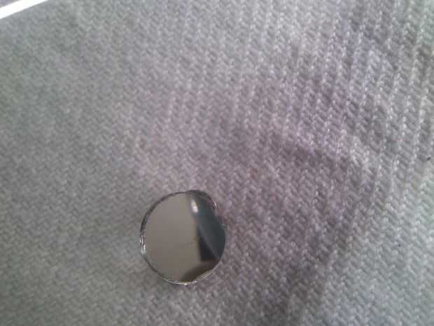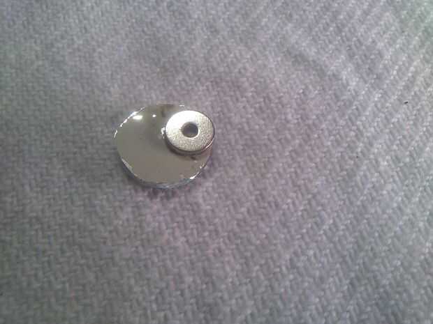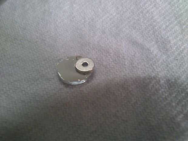 Sólo aplique un pegamento en la parte posterior del espejo redondo y pegar el imán que recibimos de los auriculares en la parte posterior de la misma.