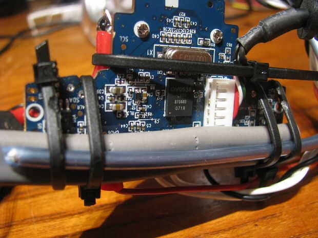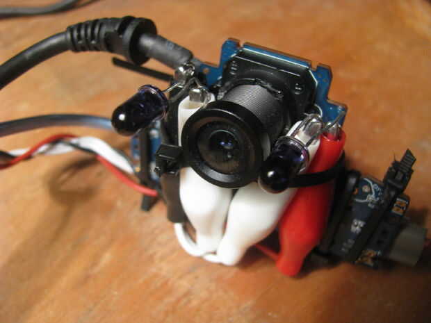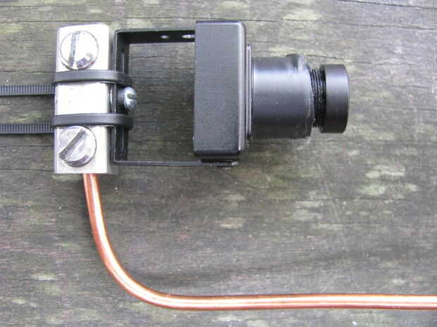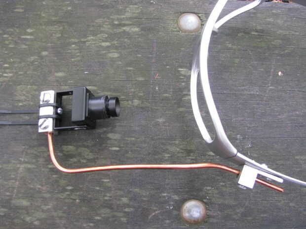 Usted puede poner una pequeña longitud de cinta de doble cara entre el sustrato rígido y la armadura de alambre para unir las tres piezas y para asegurar un montaje más seguro. La cámara aún debe ser ajustable en términos de echada y puede requerir ajustes ocasionales (o incluso volver a montar) entre usos.