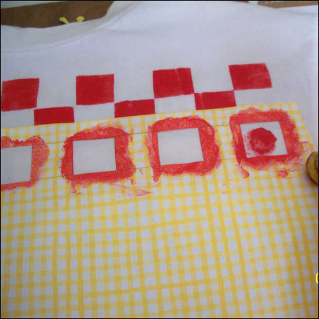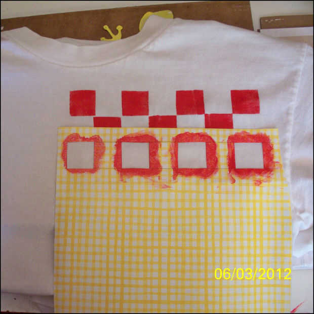 Mediante técnicas de cuidado, alinee y coloque la plantilla y proceder a hacer el colorante en.  No sobrecargar el pincel o una esponja y asegúrese de que la plantilla presiona hacia abajo firmemente para prevenir el sangrado alrededor de los bordes.  Es mejor empezar a luz y luego oscurecer cuando proceda.
