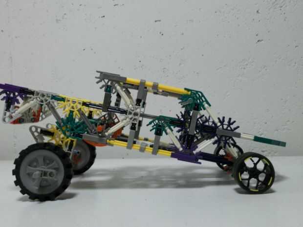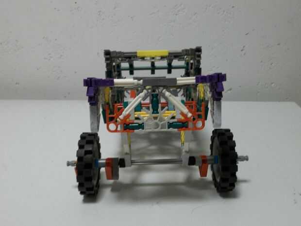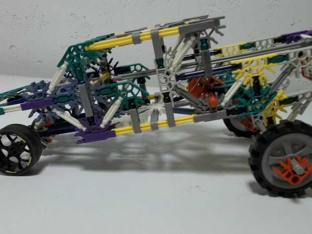 Construí este hace aproximadamente un año y fue utilizado para la rampa de salto competiciones contra mi hermano. Teníamos estos concursos todo el tiempo, y que empezamos a utilizar suspensión para asegurarse de que los árboles no rompen en la rampa o en el aterrizaje (hemos utilizado sobre una rampa inclinada de 45 grados). Este carro solo tiene suspensión trasera porque no podíamos hacer una suspensión fuerte de los neumáticos delanteros, que tomaron la mayoría del impacto de la rampa. Este carro significa un cambio de diseños complejos que utiliza un montón de piezas de diseño simple y robusto que eran más fáciles de reparar y, por alguna razón me alojé juntos mucho mejor.