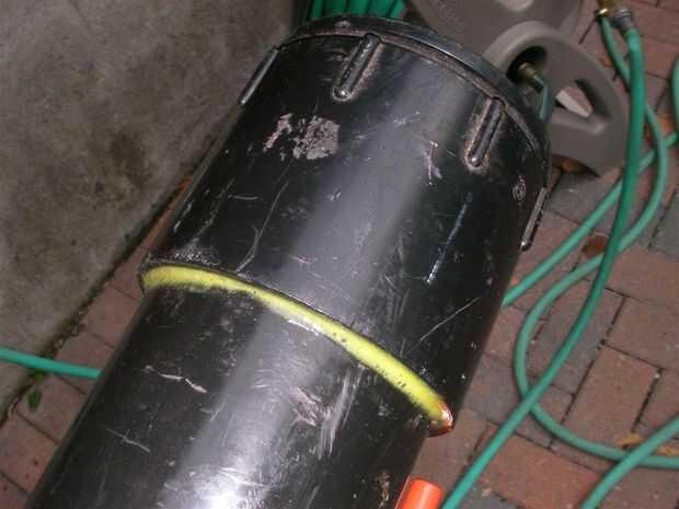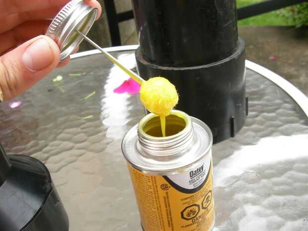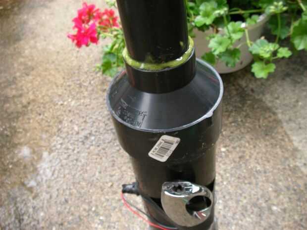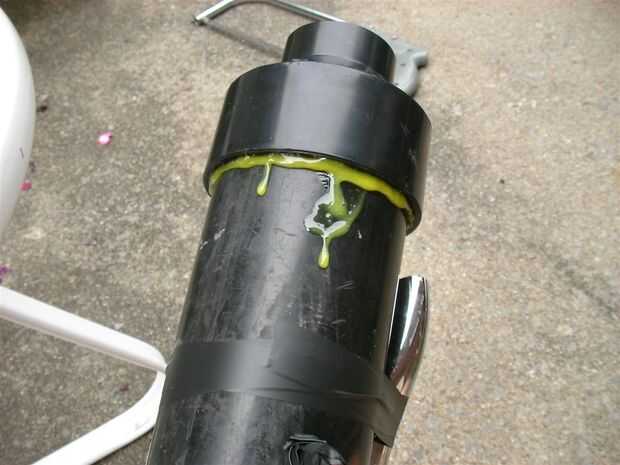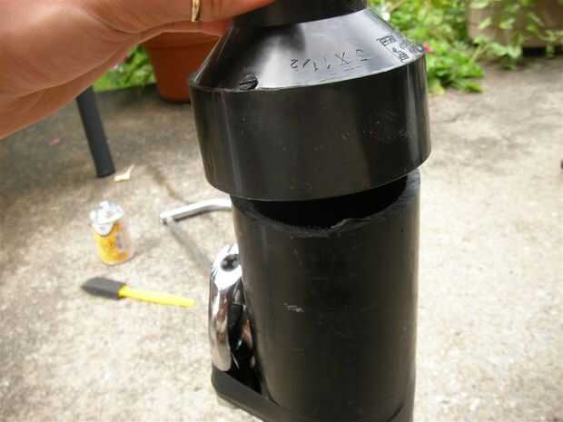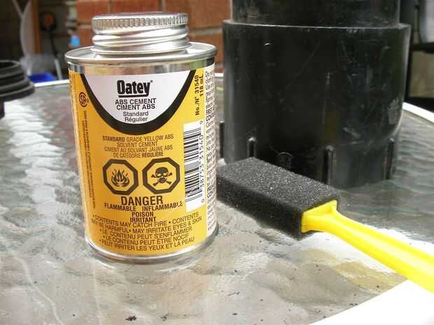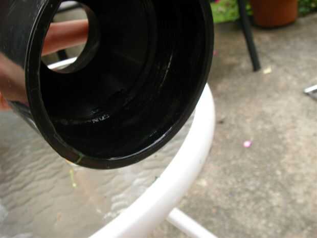 -Difundir algunos cemento ABS en el interior del reductor y fuera uno de los extremos de la tubería, deslice el reductor en la tubería con un método de torsión