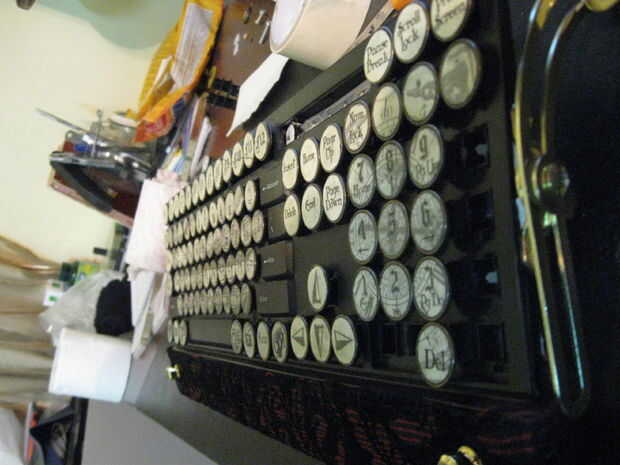Para la barra espaciadora y el agujero donde había los molesto juego cerrar botones me inserta algo de tela y pedir una placa de latón grabada de ebay para caber allí.