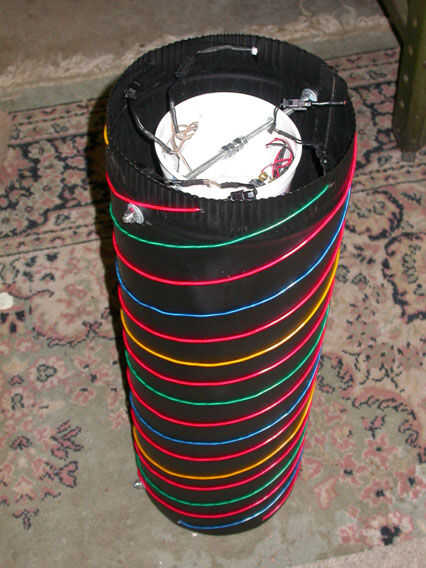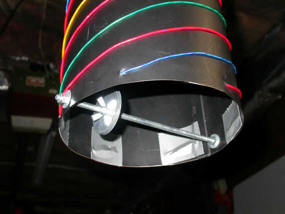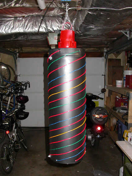 Hay cuatro tuercas cerca del centro de la varilla roscada superior, que puede ser movido y apretar para fijar la ubicación del punto de suspensión. La costura por la parte del tubo de la chimenea añade peso a un lado, desequilibrando el tubo, por lo que necesitaba para poder ajustar el balance. Yo también colocada algunas arandelas pesadas a lo largo de la varilla inferior con tuercas de mariposa, así que también los pueden mover para ajustar el balance.
