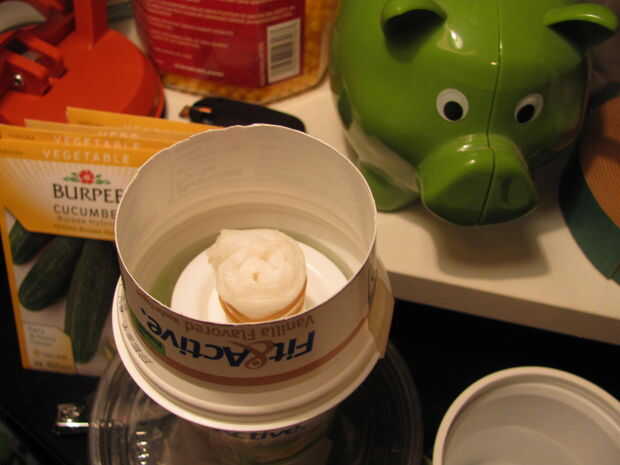 Quería obtener algún crédito de escuela (educados en casa: D) así que miró a hidroponía y encontré este maravilloso instructivo que era perfecto para mí. Por desgracia necesito tomates y la plántula no caben en un cartón de huevos, así que he aquí! El YogurtPlanter9000! ' Tis de yogur dos contenedores, uno para la base y uno para la planta para sentarse y un protector de desechos. La planta se cultiva en papel de seda sobre un depósito de agua que mantiene húmeda la TP.