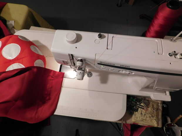 Cosió esa ventaja sobre la base del sombrero de la seta, superpuestas donde se unen los bordes.