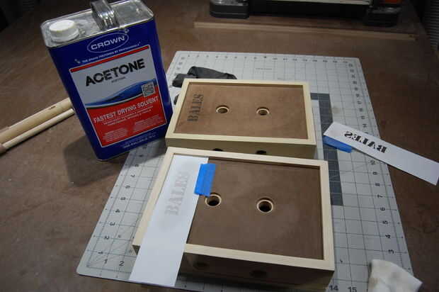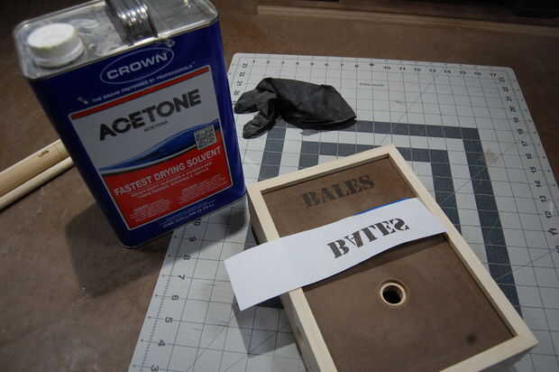 Si hubiera tenido suficiente previsión, has usado mi plantilla plástica y aerosol pintado mi nombre en el panel inferior antes de armar la caja... pero no lo hice.