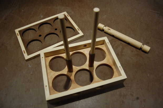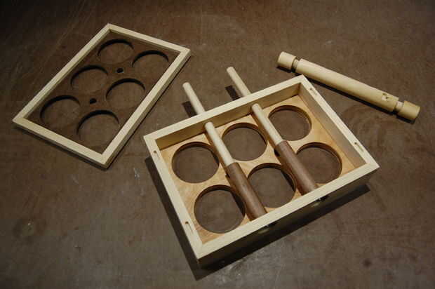 1. Inserte los postes a través del gran conjunto de agujeros en el lado de la caja. La lavadora 1" fender tocará fondo hacia fuera una vez su la parte 5/8" de este agujero.