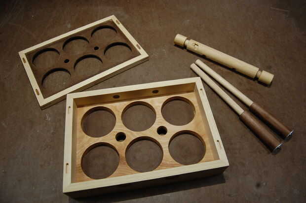 2. Conecte la tapa a la caja insertando los dominós de la tapa en las ranuras de la caja. Es una fricción muy buena forma.