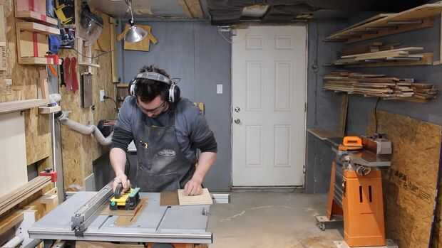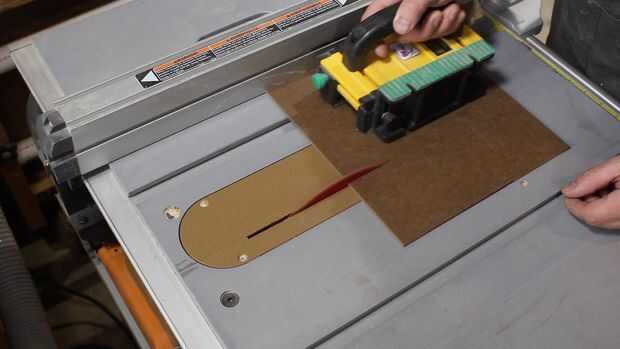 Los tres paneles se cortan a 6 1/2 "x 9 1/2" con la Sierra de mesa.