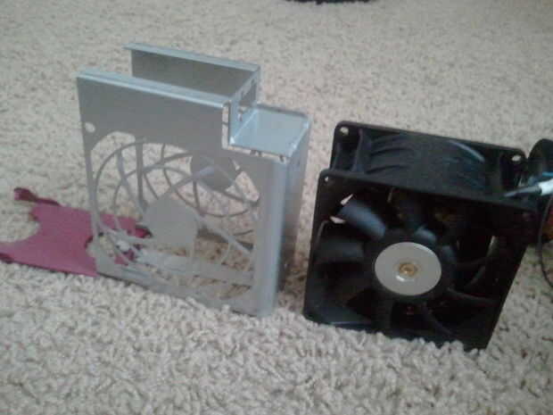 El ventilador Delta fue dado también a nosotros y lo que encuentra! Uno de Padre nuestro miembro del equipo de construcción trabaja en HP, y tirar un servidor rack ventilador porque tenía un rodamiento ventilador delantero dañado, todavía funcionó sin embargo (más sobre el problema en el primer material corriente de versión 5). HP en su lugar le dio a su padre, quien le dio a nuestro grupo. ¡ Gracias HP! Llegó a nuestra sala de pequeño taller en una carcasa de metal y, como se ve en la foto dos, inmediatamente se procedió a retirarlo. Ahora en serio, no estamos totalmente imprudentes; tenemos razones para retirar las parrillas. Las parrillas en ambos casos se quitaron para minimizar el tamaño y peso. Aunque los ventiladores están montados en juguete de los niños (KVG marco), el carro nunca se manejarán por los niños. Las personas que manejan el carro no saben para meter cualquier dedos u otras partes del cuerpo en las cuchillas giratorias. Por último, se corta la corriente (batería desenchufada) cada vez que tratamos con el ventilador.