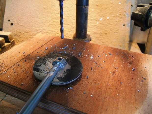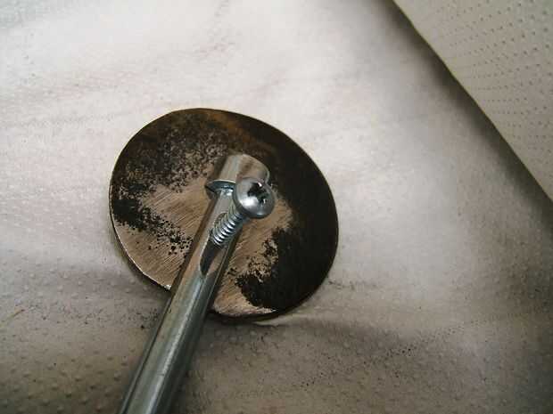 Inserte el disco, haga dos orificios en ambos (lado a lado) y romper unos autoscrewing tornillos o clavos en él para uniforme el conjunto.