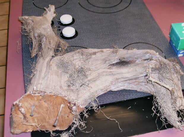 La pieza de madera en la tercera foto es el Monte original de que el pescado vino.