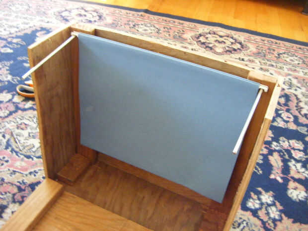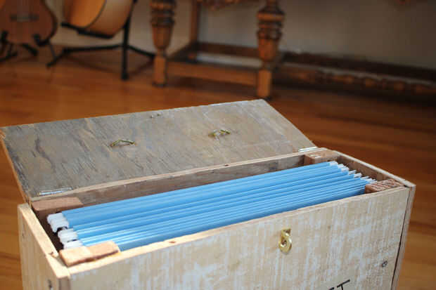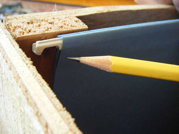 Este es el método que utiliza para hacer los rieles que se sentaban en los archivos. Taladré agujeros en los lados ancho de 12" pedazos de la esquina. Los agujeros estaban sobre anillado"profundamente en la madera y sobre cinco octavos de pulgada desde el exterior de la pieza. También eran aproximadamente tres octavos de pulgada de la parte superior de la pieza. Lo hice en ambas piezas de esquina en la parte sólida de la caja. En el otro lado con bisagras de la caja hice los mismos agujeros, y un derecho por encima de ellos por lo que es una ranura. Puesto que hay una ranura, los rieles que poner ficheros en pueden caber en los agujeros en un lado y en las ranuras en el otro lado por lo que cuando se cierra caen en posición. Si hay agujeros en el otro lado, no funciona correctamente porque se atranca. Utilicé ⅛"soldadura de acero inoxidable barra para hacer los carriles de archivo. Cortar la soldadura anillado de Cañas 3"largo, usando un cortador de metal de hoja grande. Ya que la mayoría probablemente no este accesible, probablemente podría utilizar un par de cortadores de perno. Esta varilla de acero inoxidable es muy difícil de cortar porque es acero inoxidable, cortadores de alambre normal podrían no funcionar a menos que usted puede conseguir un corte muy fuerte o si son cortadores muy fuertes. Cortapernos funcionaría muy bien pero era perezoso y no quería encontrar un par.