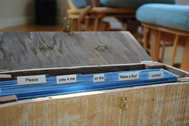 La razón por la que hizo esto es porque yo siempre he sido realmente inspirado por Instructable proyectos y quería hacer uno yo mismo. Vi el concurso de "Hacer a Box" y mi mente de pronto se llenó de ideas, como una caja que abrió sus puertas en un lugar fresco, interesante o una caja de almacenaje, pero en lugar de hacerlos decidí sobre un cuadro que podría servir dos propósitos utilitarios a la vez y parecía fresco y agradable. Este cuadro tiene el propósito de ser un cuadro de gabinete de archivo y también una caja de propósito general que puede ser trabada y cerrada para que pueda ser protegido y llevado fácilmente. También quería contribuir a Instructables.com así otras personas pueden hacer proyectos interesantes y divertidos. La próxima vez no utilizaría la plantilla vio que utilicé esta vez porque no hacía los cortes tan rectos como quisiera que fueran, que era una especie de decepción porque había unos agujeros y no se unen como bien como gustaría. Espero que la próxima vez tengo más tiempo porque luego no tener que atornillar juntos, solo me podrías dejar el pegamento se seque y se vería mejor. Sólo una pequeña cosita es que me hubiera gustado el pestillo que plata como las bisagras o que todo sea oro tan solo coincide un poco mejor. El cortador de metal de hoja también dejó cortes burdos en la barra de soldadura utilizada para los carriles de archivo, por lo que fue un poco irritante, pero no hace tanta diferencia porque está oculta. Además de estas pequeñas cosas, la caja resultó realmente bien después de todo y funciona igual que espero. Tuve una dificultad leve cerca del final de hacer esto sólo porque rompí mi muñeca, por lo que fue un poco difícil de utilizar algunas herramientas y tomar fotos de este Instructable. También tuve un momento difícil con la sierra que usé porque era un poco complicado hacer cortes rectos, y al final no eran incluso todo lo que recto. Trabajé realmente duro en este proyecto y abarrotado que en unos días por lo que podría conseguir hacerlo por el 4 de abril para el plazo del concurso "Hacer a Box", así que por favor votar por este proyecto si te gustó. También estoy entrando el concurso "Sólo herramientas de mano", si quieres votar por mí en eso demasiado. Gracias por leer este Instructable y espero que se inspiran para hacer o algo similar!