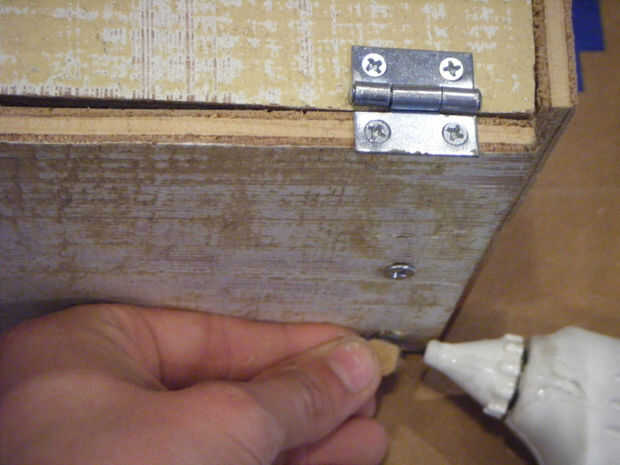 Esto también es un paso opcional pero sin duda, recomendaría este si usas tornillos. Tomé algunos pegamento fieltro y un poco caliente a prueba de arañazos las cabezas de los tornillos. Después de cortar fieltro del tamaño de la cabeza del tornillo, me caliente había pegado a los tornillos en la parte inferior de la caja donde va estar descansando en el suelo, mesa, etc..