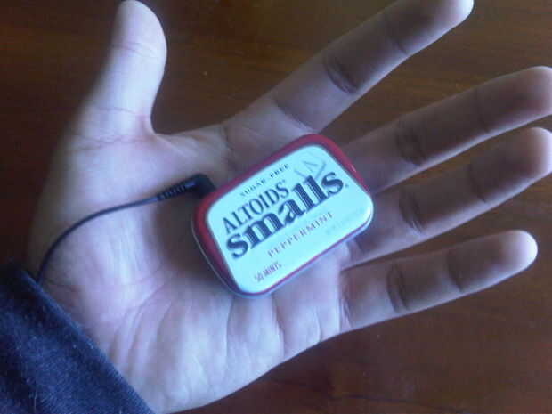 Ahora, [ut el reproductor de mp3 dentro de la bandeja, enchufe los auriculares, pulse play y cerrar la lata. ¡ Hurra! ¡ Lo hiciste! Dése una palmadita en la espalda!