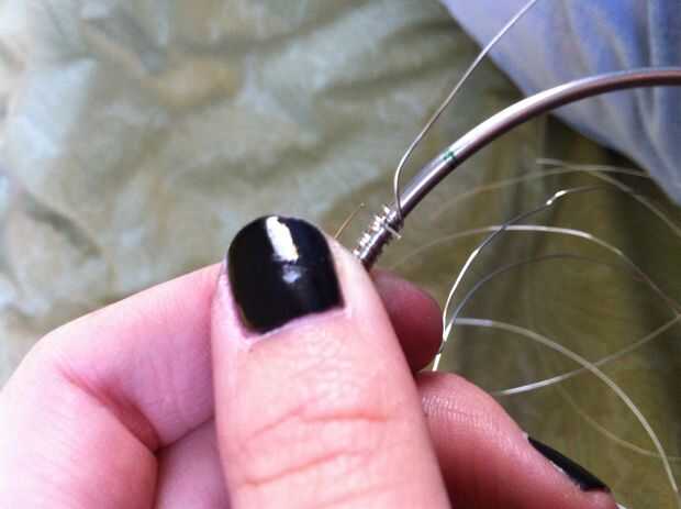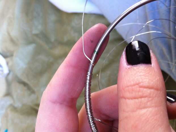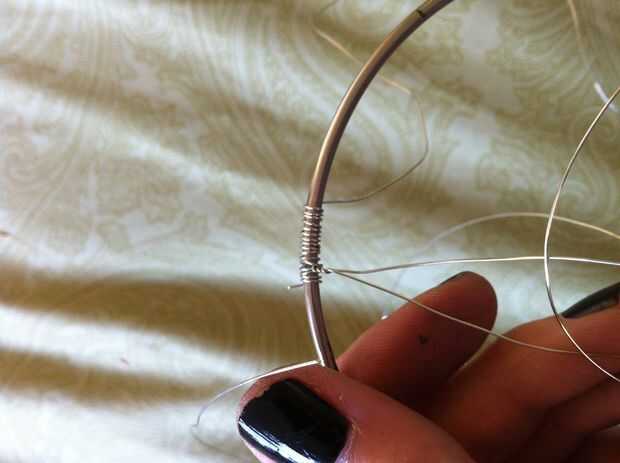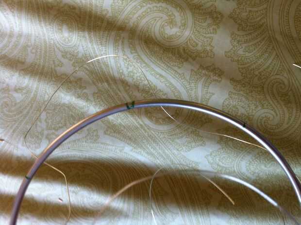 después de 5 ó 6 vueltas diapositiva envuelve el alambre más cercano el extremo de su nuevo trabajo sobre la marca más cercana