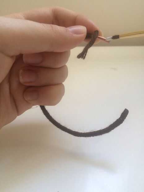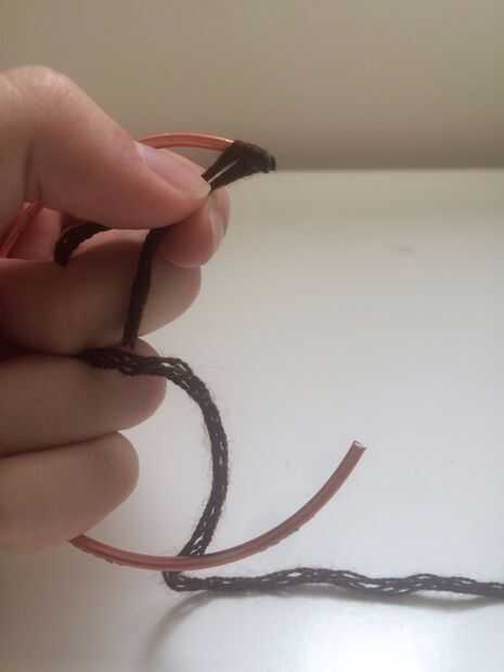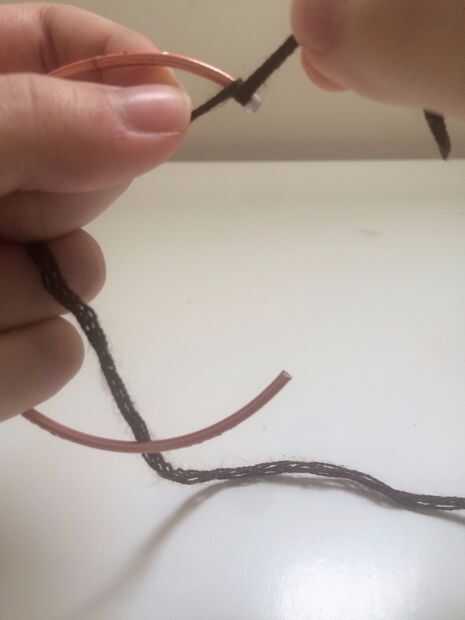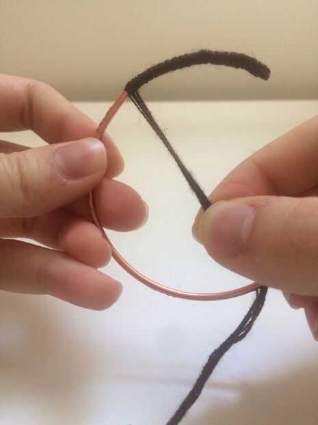 Poner pegamento en el extremo y empezar a envolver. Al llegar al final pone pegamento en el extremo también. Envuelve hilo 2 veces pero una vez funciona también.