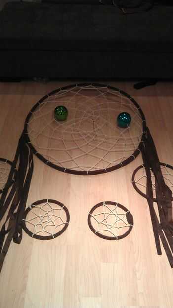Las plumas eran de una tienda de artesanía y encontré que eran suficientemente grandes como para ser la escala adecuada. Un alambre largo en ellas realizar montaje más fácil. I rosca las bolas de pong de ping completa bajar el eje de la pluma, viró en su lugar con pegamento caliente, envuelto con la tela de antelina y había atado al borde del bastidor principal.