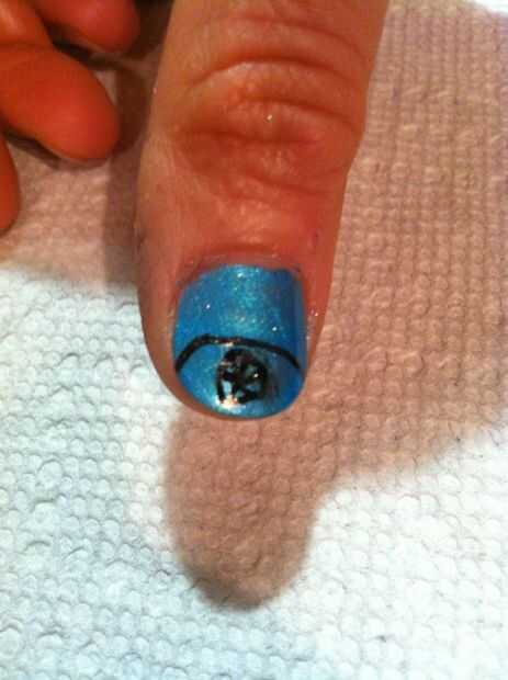 de uñas es divertido! No soy muy bueno en el arte de uñas pero pensé que sería divertido intentar algo que no sea esmalte para uñas. Por lo tanto, utilicé pintura de tela dorada con esmalte de uñas negro. Puede utilizar pintura de brillo también. Mis